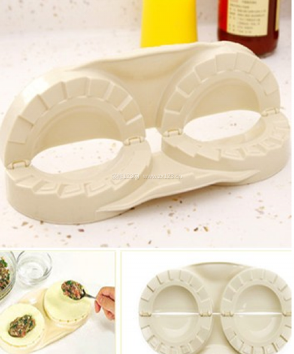 將餃子皮放在模具上,放入餡后將模具對折壓緊,一壓就能出兩個既好看又勻稱的餃子,而且節(jié)省時間更衛(wèi)生方便!