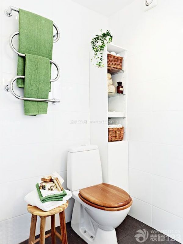 一、如果抽水馬桶的設(shè)計(jì)比較靠墻,那么其內(nèi)的三角區(qū)域也可好好利用起來,無論是放上一個(gè)小型的收納架緊貼墻面還是直接在墻上放上幾個(gè)符合墻形的架子都是不錯(cuò)的主意。