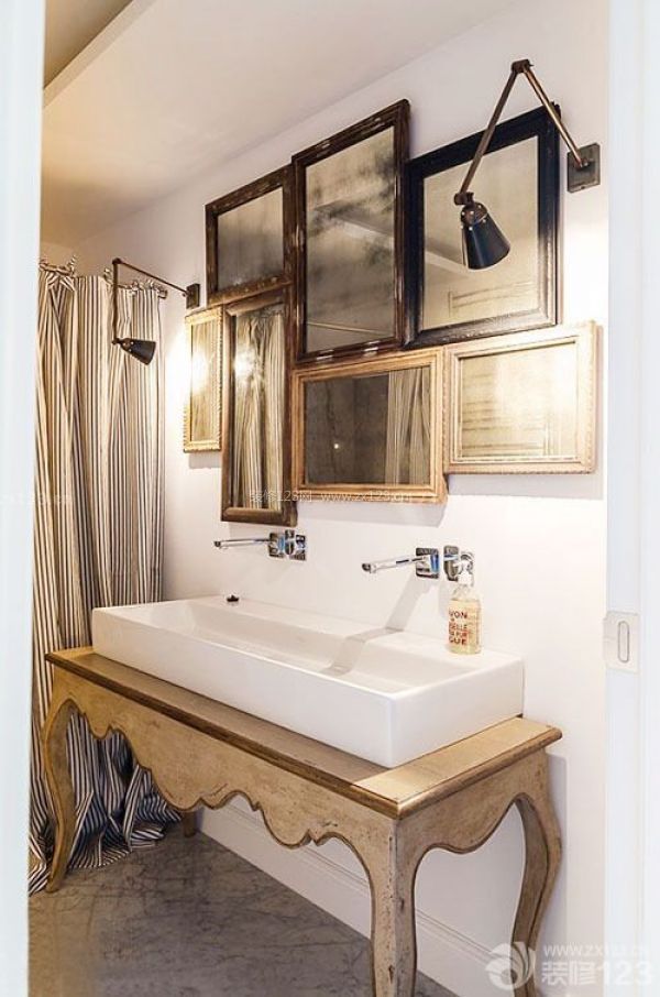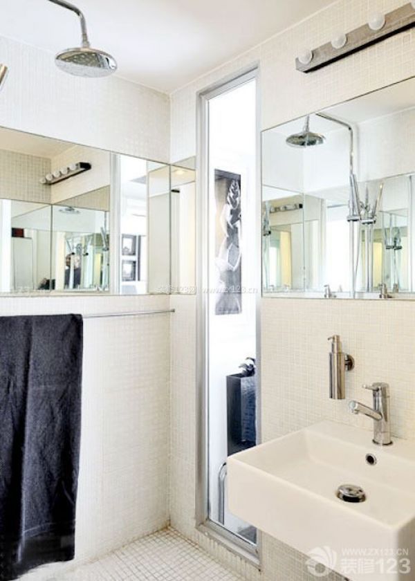 三、在利用鏡面擴(kuò)展功能的同時(shí),不要忘記它的裝飾作用。案例就是個(gè)最簡(jiǎn)單也最好理解的裝飾方法。將幾面鏡子頗具創(chuàng)意地安置在衛(wèi)浴空間,在擴(kuò)大空間范圍的同時(shí),更使得主人每日的梳洗打扮充滿樂趣——多一面鏡子,多一個(gè)發(fā)現(xiàn)自己另一個(gè)側(cè)面的機(jī)會(huì)。