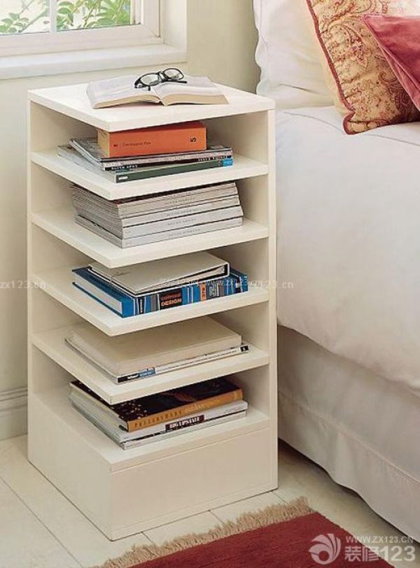 柱體小柜子,兩面開放,共5層分格,平時還可轉動柱體,將開面面向床頭一側,便可窩著取書看書了,若是愿意,還可將這個柜子平房過來,放在客廳也是可以的。