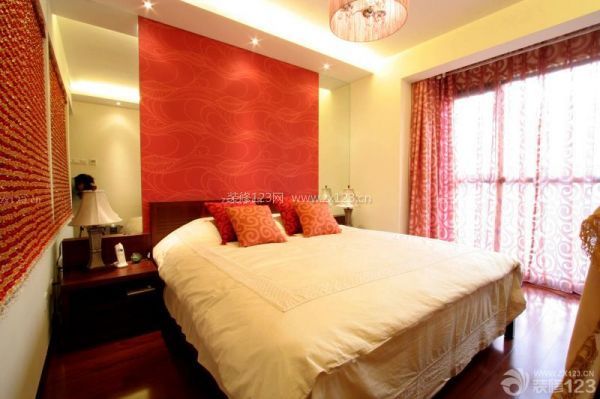 臥室的設計比較簡單,融入紅色背景墻,看起來更加熱情,浪漫。