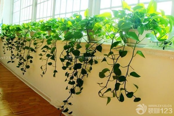 綠蘿這種植物同樣是吸收甲醛的好手,而且具有很高觀賞價值,蔓莖自然垂落,藤長可達數米,節間有氣根,葉片會越長越大,葉互生,常綠。蘿莖細軟,葉片嬌秀。用不了多久就能欣賞綠蘿如瀑布般傾瀉的颯爽。它既能凈化空氣,又能充分利用空間,為呆板的墻面、柜面增加活潑的線條、明快的色彩。