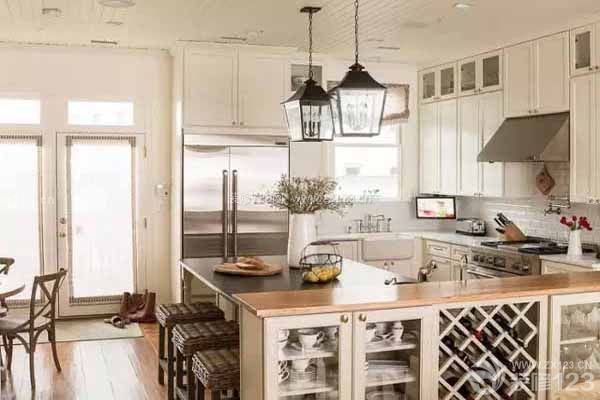 島臺型:除了靠墻的櫥柜,在廚房中間加一個島臺,兼做餐桌也可以做吧臺。美劇里,早起坐在臺邊看著最愛的人做愛心早餐不再是夢了。