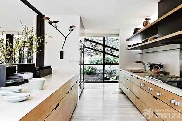 雙一字型:櫥柜分別靠兩邊的墻邊設置,活動區域在兩條之間,儲存空間更多。