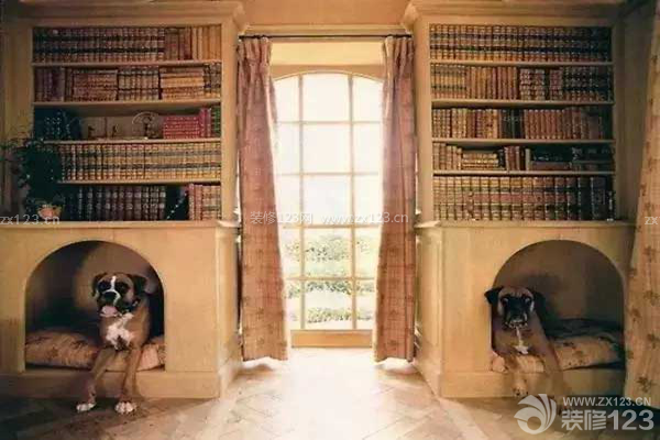 3、書柜法:如果你熱愛閱讀,那么家里一定少不了大大的書柜。在這樣的書柜下部為寵物保留一個空間作為小床,也是節省空間的上上之選了,看書累了也就可以和萌寵游戲游戲。