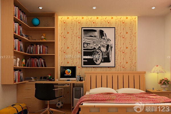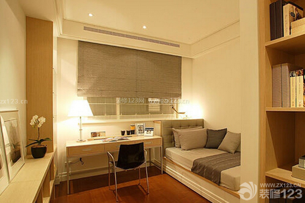 如果家里沒有單獨(dú)的書房,將書房設(shè)計(jì)在臥室內(nèi),我認(rèn)為是最適合不過了,雖說臥室是休息的地方,但是在工作的時候,沒有什么地方能比臥室更安靜了,更舒適的了。這間臥室采用暖色調(diào),墻紙顏色和床、書桌、書柜的顏色相互輝映,合理的利用了臥室的空間,使不大的臥室看起來十分溫暖、舒心,為讀書辦公營造了一個良好的環(huán)境。