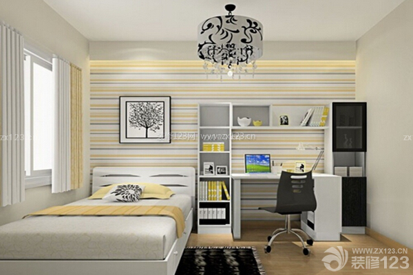 臥室加書桌形式的設(shè)計(jì)是很常見的,如果空間允許的話,相信大多數(shù)的人都會這么設(shè)計(jì),小小的書桌和書柜也能滿足自己閱讀的需求。這間臥室,設(shè)計(jì)十分簡單,以簡單的白色為基色,讓書房臥室顯得干凈整潔,毫無繁重、擁擠之感。