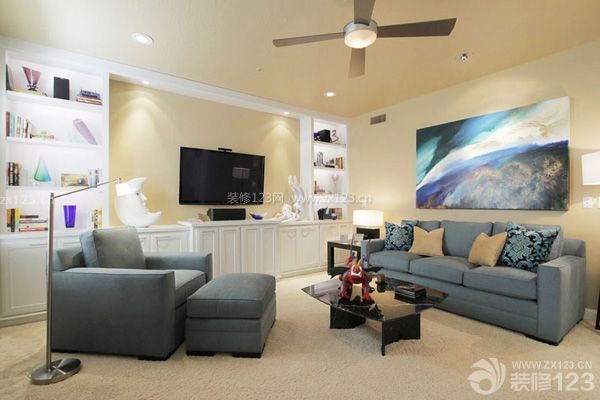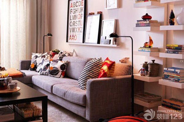 沙發背景墻除了手繪、壁紙、照片墻,還是可以是這樣的格子間。白色擱板看似隨意隔出了大小不一的小格子,用來擺放零碎物件再好不過來,適當的留白不會產生壓抑感,最大化的利用墻面空間。