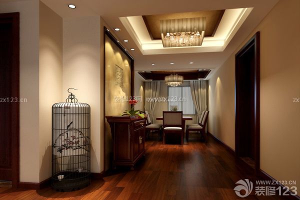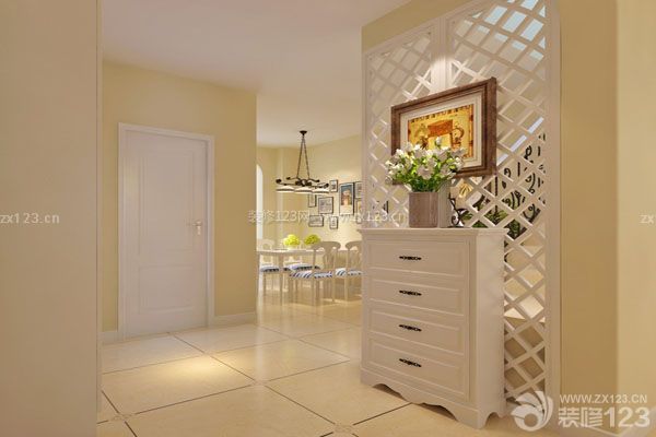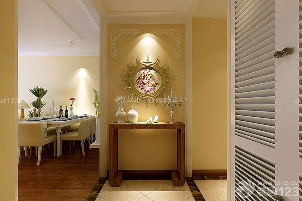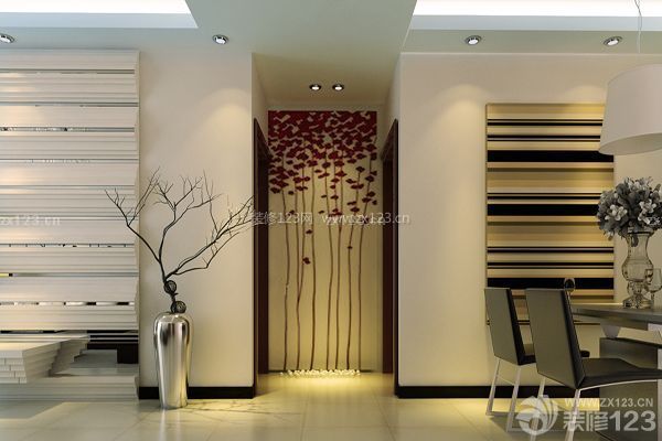 進(jìn)門處設(shè)置“玄關(guān)對(duì)景”,最大的作用就是遮擋人們的視線。這種遮蔽并不是完全的遮擋,而要有一定的通透性。因此墻壁間隔之間應(yīng)下實(shí)上虛,面對(duì)大門的玄關(guān)下半部應(yīng)以良好的磚墻或木板來(lái)進(jìn)行裝修,上半部裝修則可以選用明亮的裝飾材料如磨砂玻璃。墻壁宜光滑,墻壁的顏色要與天花板色調(diào)協(xié)調(diào)一致。