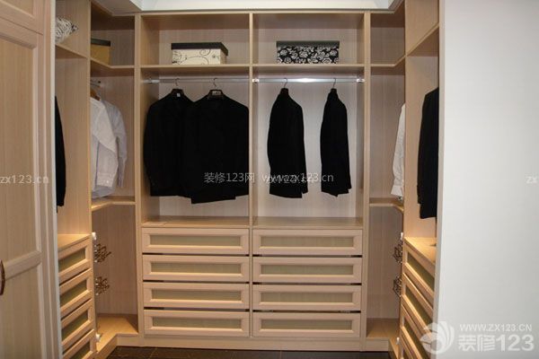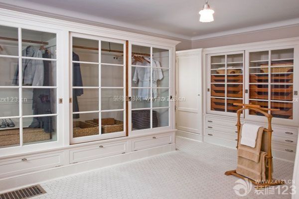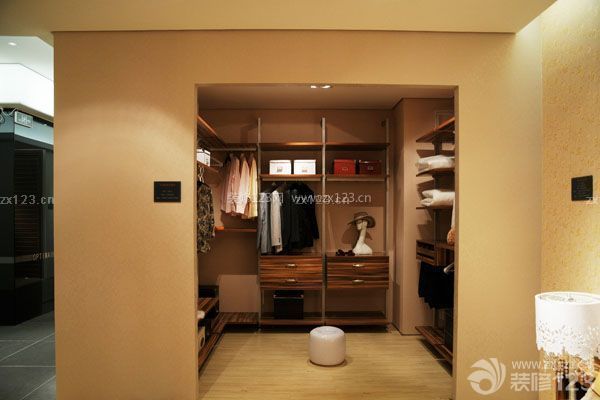衣帽間家具可以再外面購買,也可以在裝修時整體設計制作,為節省空間,衣帽間最好設計成推拉式,里面的衣櫥可以不做門。