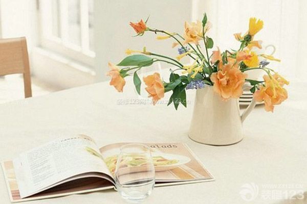 餐廳襯托美食讓人開胃餐廳是全家人天天團聚、進餐的重要場所,更是一種交流的地方。花藝的色彩應與餐桌上的美昧及桌布相協調,這樣會制造出一種和諧的美感。無論是溫暖的黃色調、充滿生機的綠色調、還是溫馨浪漫的粉色調,都很適合餐桌,可以營造出浪浸、有情致的用餐環境。在選擇花瓶時,無論是精巧可人的小花,還是美艷動人的大花,都有著各自炫美的方式,讓你的胃口都隨著清雅別致的花兒舞動起來。但在餐桌上擺放的話,不建議造型太大,否則影響視線。