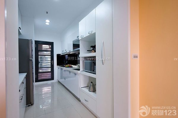 廚房背景墻為黑色馬賽克格子圖案,跟普通的大白墻相比,更具設(shè)計感。瓷磚的材質(zhì)也讓廚房油污更好清理。廚具、餐具都被收納在櫥柜之中,廚房沒有一絲雜亂之感。現(xiàn)在沒有幾個男人能堅持每天下廚!廚房是女人的天下,廚房的布置也很重要,弄不好就容易下廚時手忙腳亂,油煙越來越多。同時,廚房也是最容易雜亂的地方,如果能做好分類規(guī)整,保持整潔,會讓整個空間顯得更寬敞。
