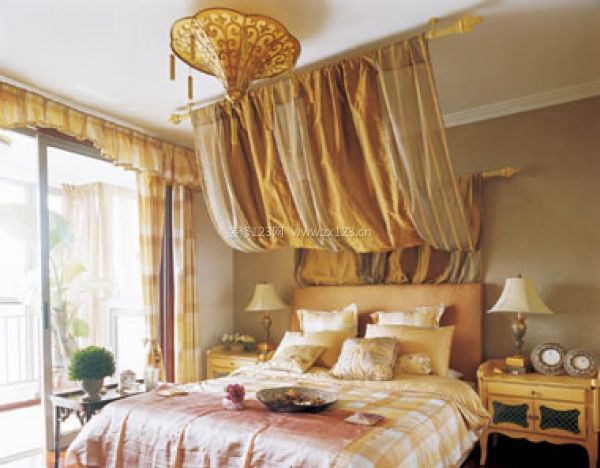 床幔氣質(zhì):雖說是以華麗為主題,卻沒必要到處都是金光燦燦;即便使用了金色,也會是隱忍不發(fā)的暗調(diào)。華貴氣質(zhì)不需要咄咄逼人的張揚,這里還有個“矜持”的度需要把握,那應(yīng)該是一種神采飛揚、雍容大度的色彩與光澤。