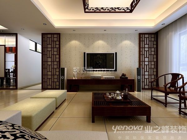 新中式風格特色:中國風的構成主要體現在傳統家具(多為明清家具為主)、裝飾品及黑、紅為主的裝飾色彩上;室內多采用對稱式的布局方式,格調高雅,造型簡樸優美,色彩濃重而成熟。
