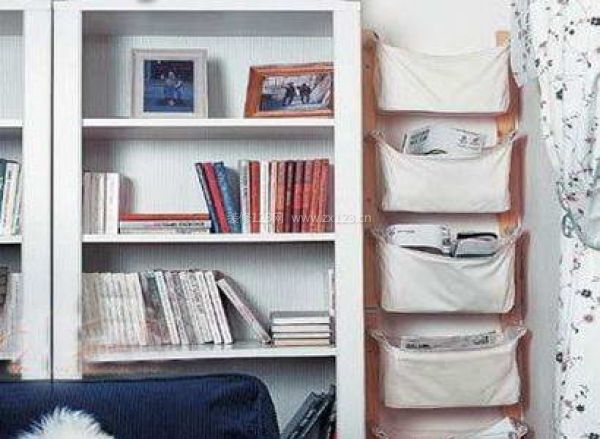 一般我們的家具都是規則的方形,并且我們習慣把家具貼墻放置,這樣在家具側面和墻之間就有一個三角形的空閑地帶,可以放置一排儲物袋,收納報刊雜志和零碎物。