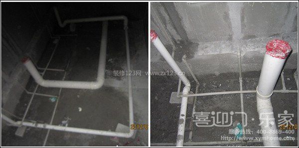 排水管、排糞管的管道都已經(jīng)鋪設(shè)完畢咯!曬圖~~上圖中用膠布貼住的作用是為了防止工人在上面“方便”哦...