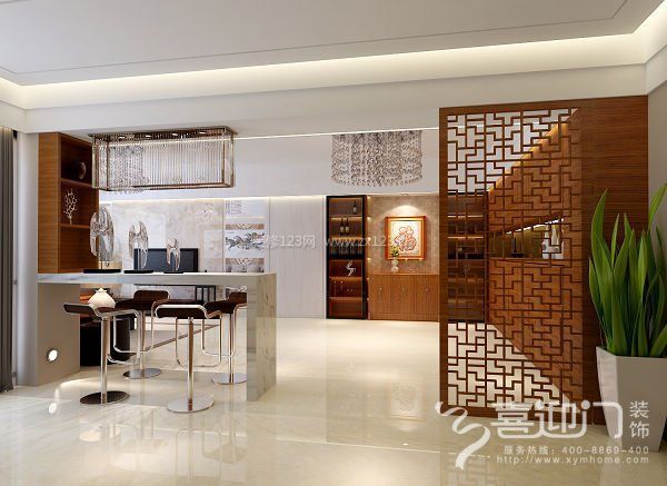 1、先做功能布局調(diào)整:原入戶(hù)花園與客廳的墻體拆掉,改為吧臺(tái)和鞋柜、收納柜,增加客廳的空間感和利用率。同時(shí)增加天花造型,使吧臺(tái)位置顯得更加整體時(shí)尚。