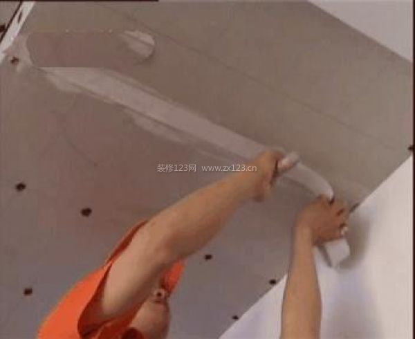 1.膩子工進場的第一件事情就是給木工作的吊頂的釘子帽等金屬物作防銹處理,以免刮好膩子后,釘帽生銹導致膩子發黃。(如果是老房子的翻新,還必須原墻面和頂的膩子鏟除干凈,不得有殘留物,再作打磨處理) 2.然后用專用的防開裂劑對吊頂的接縫口槽進行填縫處理。 3.再用牛皮紙或者的確良布用乳白膠粘貼在接縫之上,防止日后熱脹冷縮吊頂的接縫處開裂。