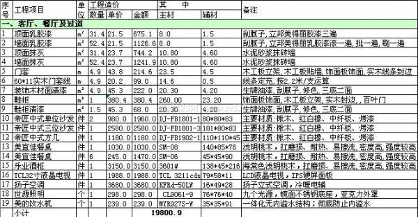 還有在裝修開工前,業主手中必須有一份很全面的裝修預算表,這既方便以后裝修公司材料進場時的驗收,也可作為有些自購材料購買時的參考,讓裝修過程變得更有保障建材購買更有目的。現在為大家提供一份完整的室內裝修預算表,以供大家參考。