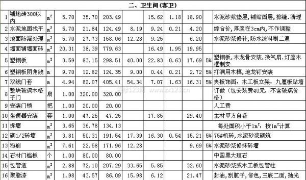 家庭裝修預(yù)算清單(二)