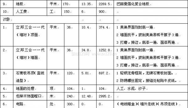 裝修費(fèi)用明細(xì)表(二)