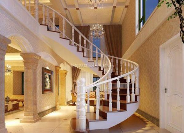 為了達到聚氣養氣的目的,樓梯的坡度要盡量小些。如果空間較大,可以采用有休息平臺的折線形樓梯,或是較為舒適美觀的弧梯。對于空間相對較小的空間來說,節約空間的螺旋開樓梯是不錯的選擇。這三種樓梯都能給室內的氣場流動留下較大的空間,既滿足了“喜回旋、忌直沖”的要求,又兼顧了實用性和美觀度。