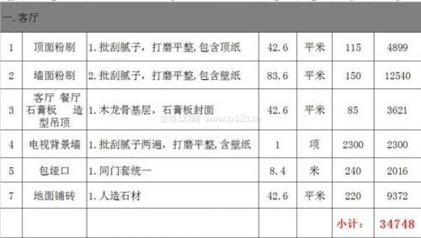 2017年最新110平米裝修預算清單(一)