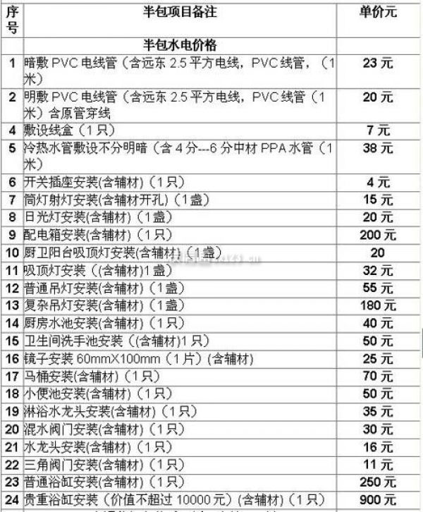 小編也是費了九牛二虎之力才找到了這樣一份裝修半包價格表,下面小編就展現(xiàn)給各位業(yè)主朋友看看,供大家參考參考。