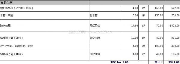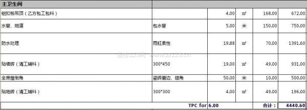 接下來是客衛,和主衛一樣,唯一不同的是防水只需要全做兩面墻,看下一下詳細預算