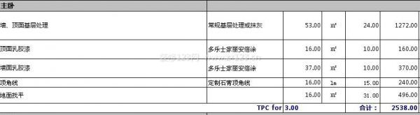 主臥要求木地板,業主只需要買木地板就行,墻面膩子乳膠漆以及頂角線裝修公司包工包料,否則提供水泥沙子及找平,看詳細預算