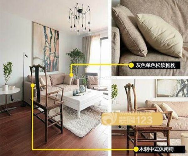 點評:白色沙發跟米白色柜子色調相近,搭配起來不顯得突兀。沙發和吊燈款式簡單卻顯得大方,木制柜子安置在這里很實用,可以把一些雜物放在里面,而不至于使客廳雜亂無章。