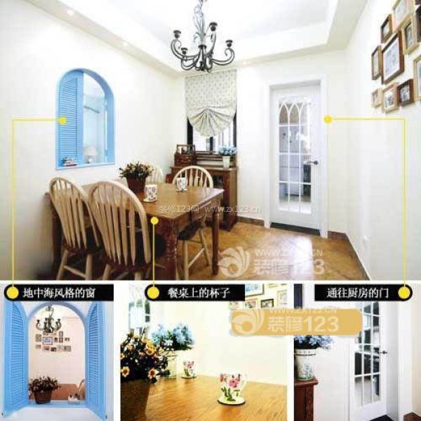 點評:小小的餐廳也很花心思,主人在細節上非常花心思。實木的餐桌和深色的地板搭在一起非常和諧,餐桌上、角落里都點綴著鮮花盆栽。藍色的窗戶把人帶到了那遙遠的海邊,好像身處在那些藍頂白墻的小屋一樣,仿佛推開窗就能看到那一望無際的愛情海。