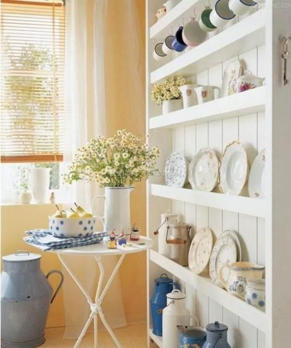 米色的墻壁配合著白色的窗紗,白色的置物架上擺滿了琳瑯滿目的器皿,陽光從窗外照進來,插在花瓶中的秀氣小雛菊散發(fā)著淡淡的香味,使房間顯得淡雅而溫馨,想要的話就自己動手布置起來吧。