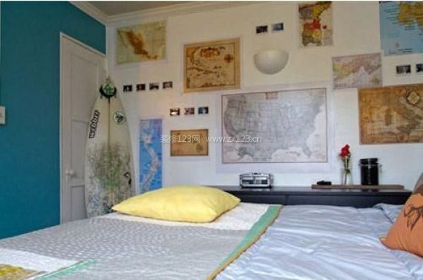 白色墻壁上的各式各樣的地圖,體現(xiàn)屋主勇于冒險的精神,有目標有理想的個性。用地圖當壁畫粘貼在墻壁,增加設計的感覺性,更加好地表達家居裝修的主題。