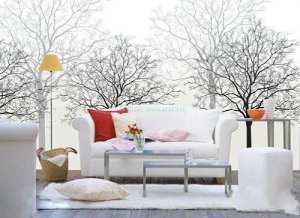白色的沙發搭配根根分明的樹枝,使這個客廳具有了冬天的味道。這個空間也顯得十分干凈清爽,十分適合用于夏天的裝飾,給人帶來一種清涼之感。