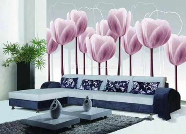 郁金香彩繪沙發背景墻
