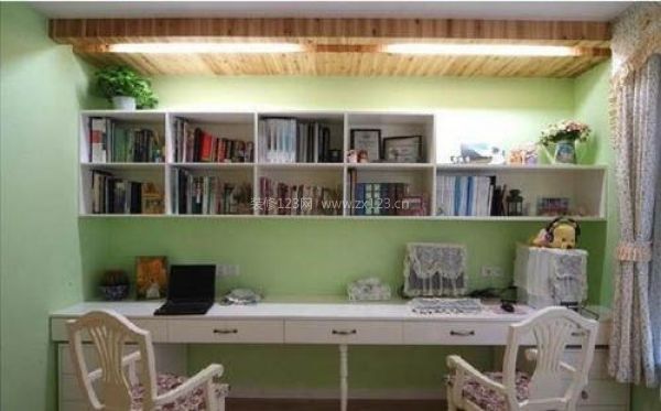 綠色點(diǎn)綴出的自然氣息的書房