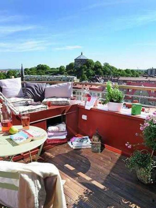 隱藏著的大收藏柜,在天氣不好的情況下可以把陽臺上所有的坐墊抱枕等都收納于其中。陽光舒適的露天環境,是用餐、親友聚會的好地方。