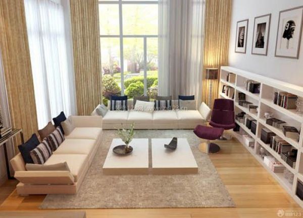 轉角型組合沙發,將沙發沿墻壁轉角擺放,形成一個互相交流的外敞式交流空間,比較適用于正方形客廳,建議再購買一個活動沙發,將客廳的交流空間豐滿起來,增強功能性。由轉角4人坐和兩個單人坐或者轉角4人坐加一個2人坐沙發組成。