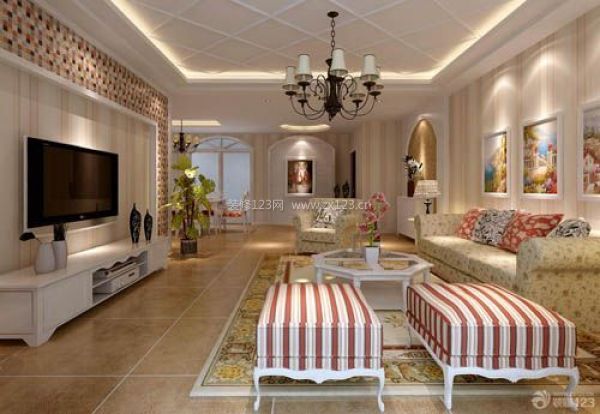 你家的大客廳寬敞而且采光較好,那么不妨選色彩亮麗的大花、大紅、大綠、方格等色彩,那會顯得雍容大氣。