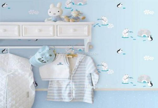 淡藍色的純紙壁紙呈現出了一種溫馨與浪漫的視覺效果 ,淡藍色卡通壁紙會讓兒童形成安靜,平和的性格,是非常適合兒童房的裝飾的。