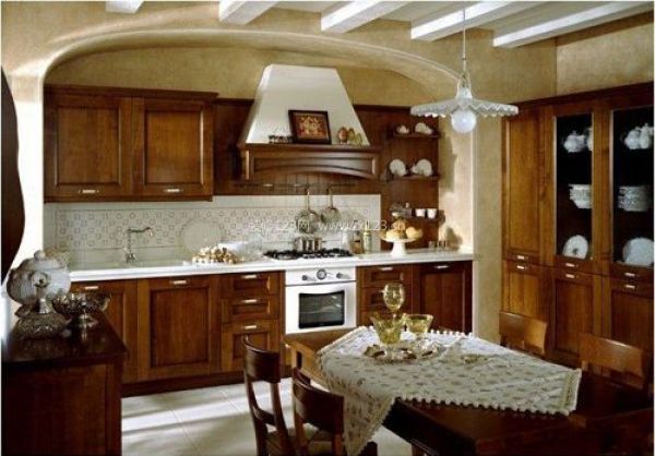 光滑的大理石櫥柜臺面使得歐式風格的櫥柜褶褶生輝,傳統的造型,簡單明了,而且方便實用,從而使得廚房與櫥柜搭配相得益彰,顯現出精致的輪廓。