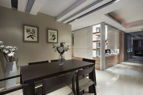 餐廳使用的實(shí)木的餐桌椅,簡(jiǎn)單的設(shè)計(jì),餐廳空間內(nèi)只在墻上掛上兩幅素雅的畫作為裝飾,顯得安靜舒適。餐廳的色彩設(shè)計(jì)其實(shí)非常重要,通常以接近土地的顏色,如棕、棕黃或杏色,以及淺珊瑚紅接近肉色為最適合,如果用灰、芥茉黃、紫或青綠色常會(huì)讓人沒(méi)有食欲。暗沉的顏色也要避免使用,有時(shí)為了兼顧相鄰空間的色彩統(tǒng)一也要盡量使用明快的顏色。