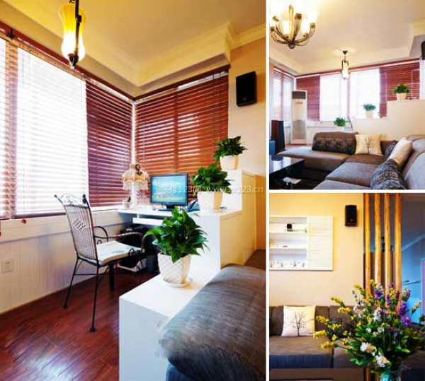 在客廳東面墻壁的角落,陽臺封閉改造成為客廳空間的一角,同時采用儲物柜切成書房和客廳的間隔,成功的打造了安靜的書房一角。