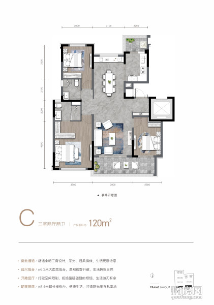 C戶型(3室2廳,120平,)