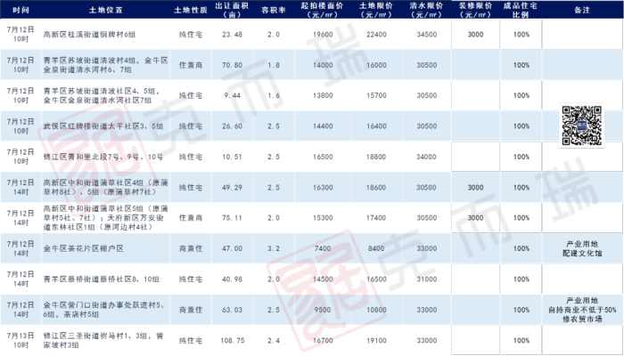 宗地位置:高新區(qū)中和街道蒲草社區(qū)5組(原蒲草村5社、7社);天府新區(qū)萬安街道東林社區(qū)1組(原河邊村4社),用地性質(zhì):住兼商用地,面積:50070.06平方米合75.1051畝,計容總建面:不小于50070.06平方米,且不大于100140.12平方米(其中兼容計容商業(yè)建筑面積比例不小于10%,且不大于21.7%),容積率:2,建筑密度:不大于25%成品住宅比例:100%,裝修限價:3000元/㎡,拍賣方式:“限房價、定品質(zhì)、競地價”+抽簽,動竣工時間:土地交付之日起12個月內(nèi)開工建設(shè),自首次取得《施工許可證》之日起36個月內(nèi)竣工,起拍價:15300元/㎡,土地限價:17400元/㎡,清水限價:30500元/㎡
