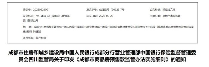 新規(guī)!成都發(fā)布最新商品房預(yù)售款監(jiān)管辦法實(shí)施細(xì)則