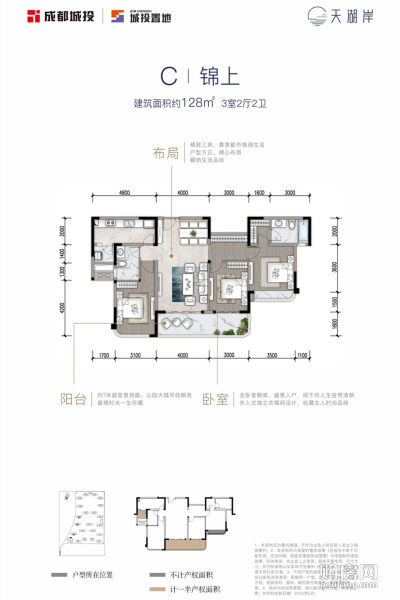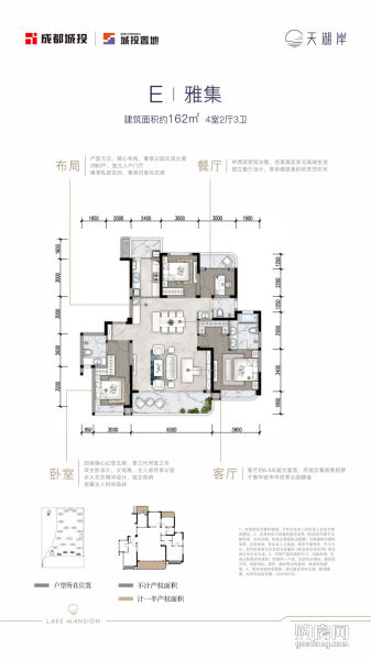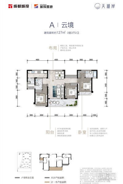 城投置地天湖岸,將空間融合到一起,利用率高,視覺上也更顯寬綽。城投置地天湖岸建筑面積164348.43㎡,戶型為127平-251平,綠化率44%