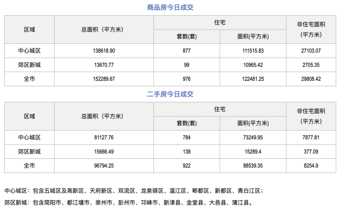 25日,成都市住建局住建蓉e辦數據顯示,成都市全市商品房成交(備案)總面積152289.67平方米,其中商品住宅成交(備案)976套,商品住宅成交(備案)面積122481.25平方米。二手房成交(備案)總面積96794.25平方米,其中二手住宅成交備案922套,二手住宅成交(備案)面積88539.35平方米。