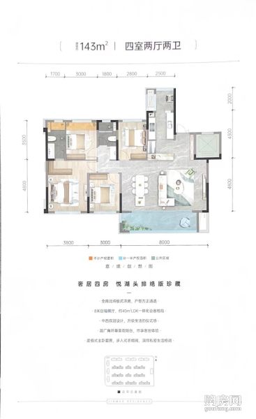 悅湖金茂悅-建面約143㎡戶型(4室2廳,143平,南北)